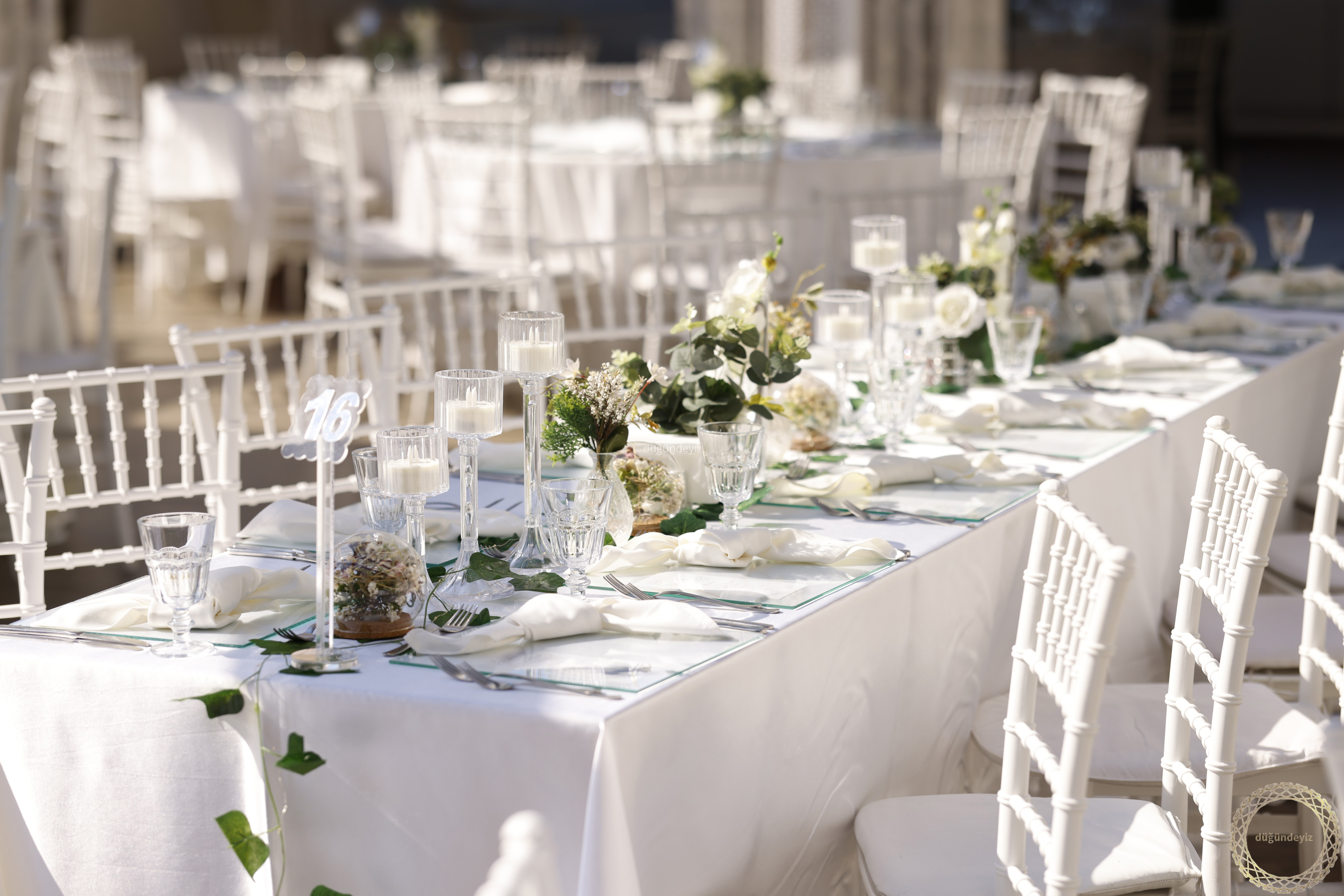 Paella Davet Hakkında Boğaz’ın kenarında, ayrıcalıklı bir noktada yer alan Paella Sarıyer düğünler için harika bir alternatif sunuyor. Düğünleri, bir yanda muhteşem deniz ve 3. köprü manzarası, bir yandan da yemyeşil bir orman manzarası eşliğinde hayata geçiriyor. Modern bir tarzda dekore edilen açık ve kapalı davet alanlarında rüya gibi düğünlere ev sahipliği yapıyor. Davet Alanları Kapalı salonumuzda 200 ila 300 kişilik düğünler gerçekleştiriyoruz. Yaz aylarında bir düğün hayata geçirmek isteyen çiftleri açık davet alanımıza yönlendiriyoruz. Burada 400 ila 500 kişiye en iyi şekilde hizmet veriyoruz. Açık alanımızın etrafı ve tavanı camlarla kaplı olduğu için herhangi bir sürpriz hava koşulunda her yeri kapatarak konukların etkilenmesini önlüyoruz. Dekorasyon Modern bir tarza sahip olan davet alanlarımızı düğünler için şık bir şekilde dekore ediyoruz. Yuvarlak veya uzun dikdörtgen masalarla bir ziyafet düzeni oluşturuyor, masaları beyaz tiffany sandalyelerle çevreliyoruz. Masaların üstüne renkli örtüler, cam ya da seramik vazolar, minimal mumlar, cam veya porselen suplalar, limon yaprakları, beyaz güller, yerleştiriyoruz. Nikah kürsüsünü renkli çiçeklerle süslüyor, arka planında tüllerle kaplı gelin tagına yer veriyoruz. Hizmetler Paella İstanbul düğün hazırlıklarına mekan süsleme hizmetleri sunarak yardım ediyor. Anlaşmalı olduğu profesyonel çekim ekibiyle birlikte davet boyunca hem fotoğraf hem de video çekimleri yaparak her anınızı kayıt altına alıyor. Ses ve sahne sistemlerini hazır hale getiriyor, canlı müzik performansları eşliğinde tüm konuklarınızla birlikte doyasıya eğleneceğiniz bir düğüne imza atıyor. Paella Restaurant İstanbul olarak çiftlere süslemeden eğlenceye birçok hizmet sunuyor, Boğaz’ın benzersiz manzarası eşliğinde kusursuz düğünler gerçekleştiriyoruz. Siz de şık tasarımlı bir davet alanında yıllar boyu anımsanacak bir düğünle dünya evine girmek istiyorsanız, sayfada yer alan iletişim bilgilerini kullanarak bizimle irtibata geçebilir, yanda bulunan formu doldurarak bizden fiyat teklifi alabilirsiniz.